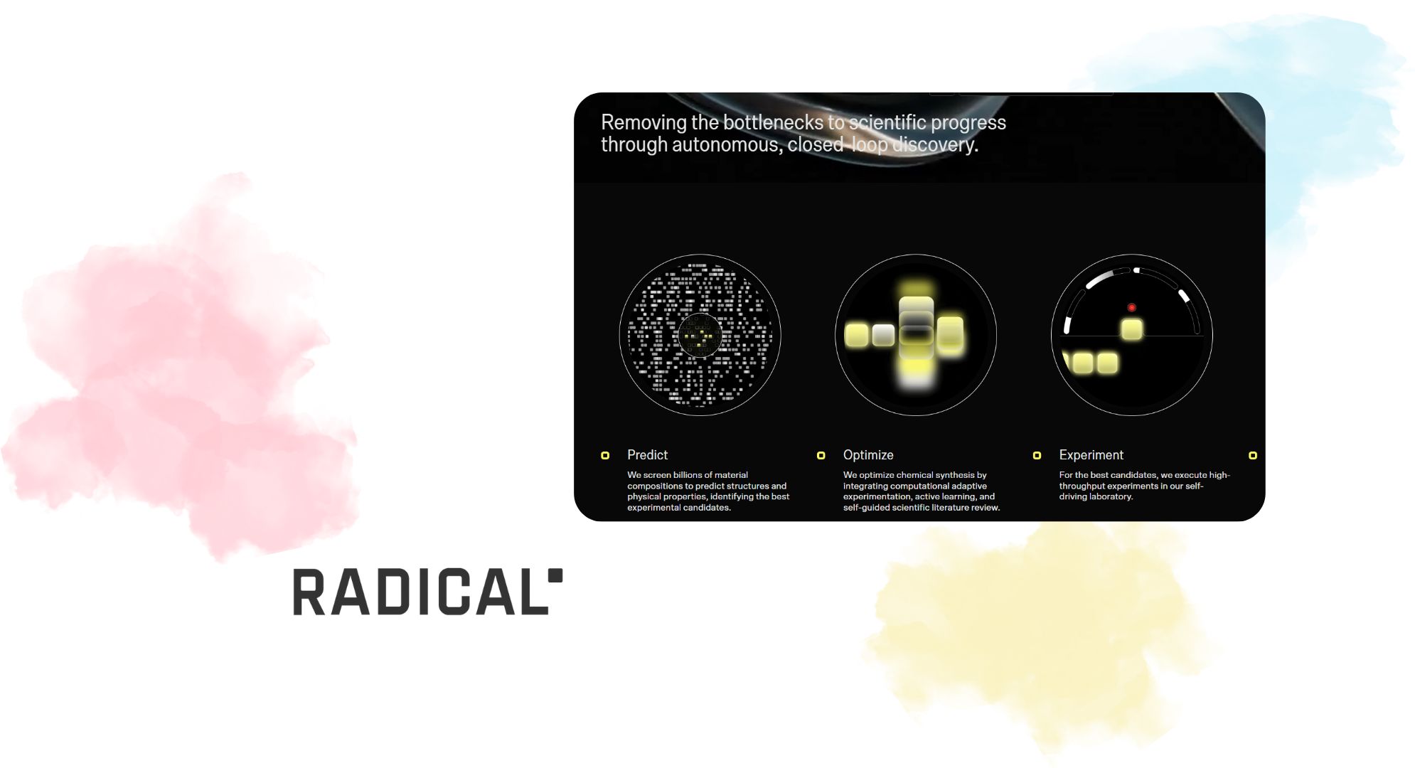 Radical AI is rethinking the scientific method by building a closed-loop system for material discovery and development, where AI designs materials, tests them, and learns from the results in a continuous feedback cycle. Specifically, it uses a process called inverse design, where it starts from a target property, such as thermal resistance from a hypersonic vehicle. Then, using machine learning, it works backwards to reduce the enormous compositional search space to the most promising candidate alloys. Finally, its largely autonomous, self-driving lab synthesizes and validates those materials. The resulting experimental data is captured and fed directly back into its models so the AI scientist can learn in real time from each experiment, continuously refining its intuition and accelerating the next cycle of discovery.